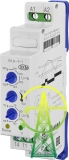 При подаче контролируемого напряжения на контакты А1 и А2 реле, если напряжение сети находится в установленном диапазоне, встроенное реле включается (замыкаются контакты 11-14 и 21-24) после отсчёта выставленной задержки срабатывания t и загорается желтый индикатор «Выход». Если напряжение сети отклонилось от установленных значений на время не менее установленной задержки срабатывания t, встроенное реле выключается (контакты 11-12 и 21-22 замыкаются), и выключается индикация «Выход».
